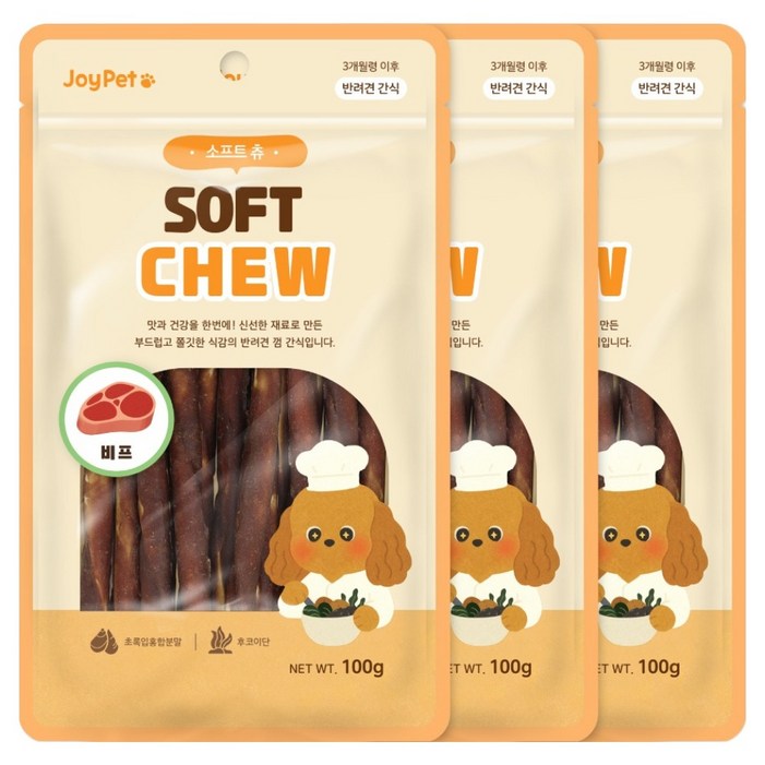 조이펫 강아지 소프트 츄 간식, 비프, 100g, 3개