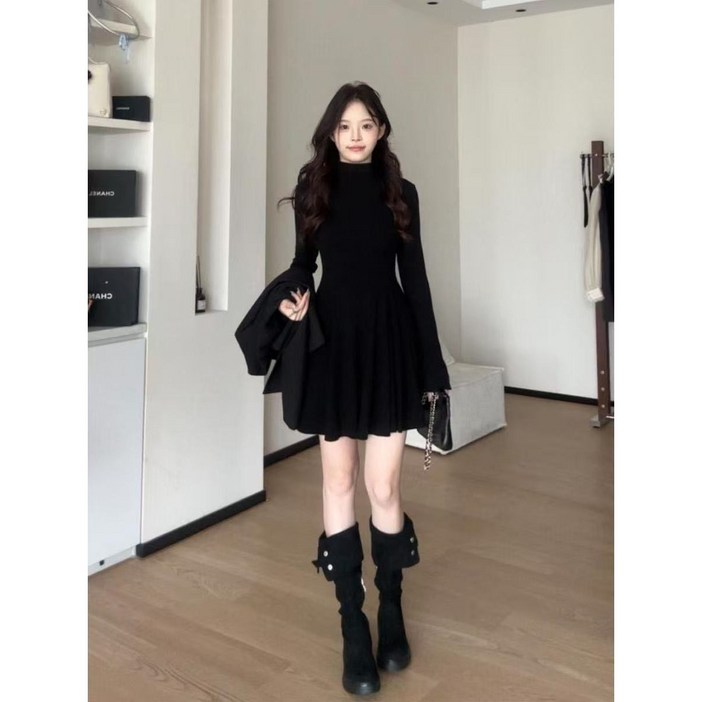 ANYOU 하이넥 니트 원피스 봄가을 고급감 슬림핏 이너 데이트룩 오피스룩