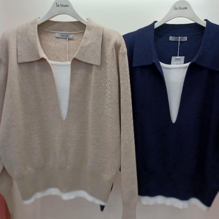 라티움 Destijl 봄느낌 앞민소매 레이어드 깔끔한 카라 니트티 D2613sw07 44891748 2957441