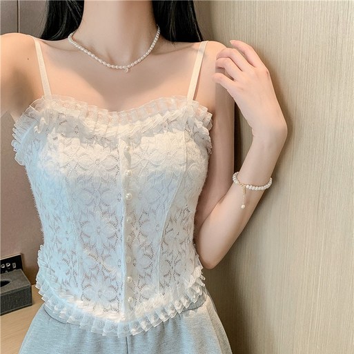 당일발송 여신 레이스 나시 브라캡내장 레이스 이너티 여신 진주단추 끈나시10대20대