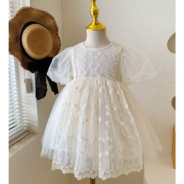 콩지키즈 자제체작 여아 블랑자수 원피스 여름 반팔원피스 자매룩 촬영룩 여아원피스
