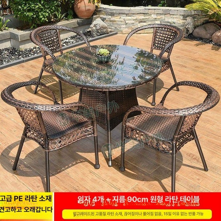라탄테이블 의자세트 4인 실외 베란다 카페 테라스 야외 발코니